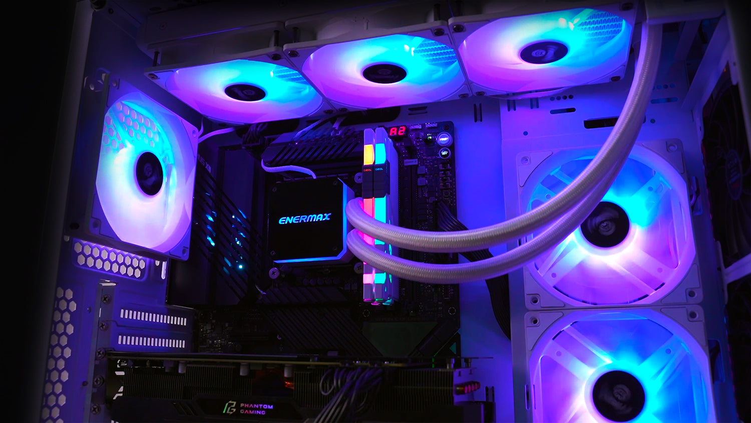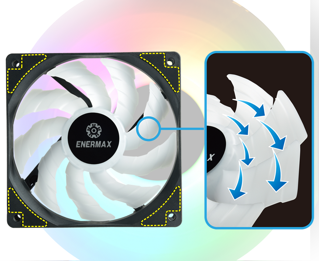 Preset 10 lighting effects; use the attached ENERMAX RGB control box to select your preferred lighting mode, brightness and speed. (Included with 360mm model only)