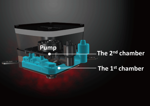 Patented Dual-chamber design isolates the pump from the heat, significantly increases the cooler’s lifespan without compromising efficiency
